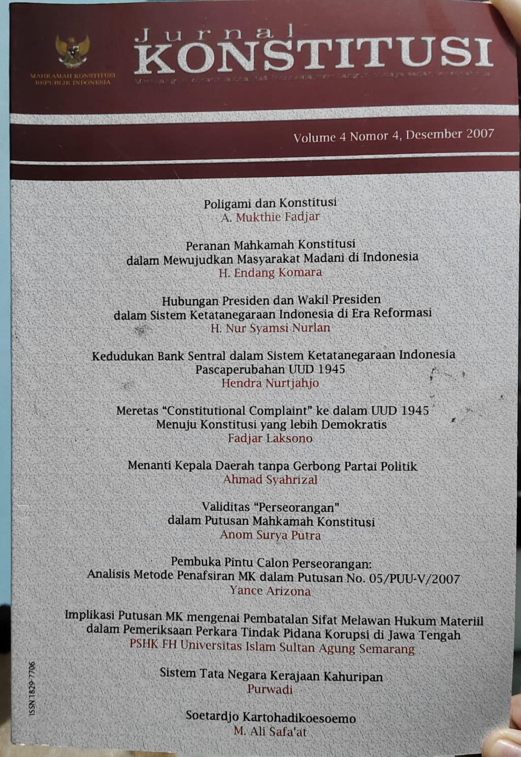 | Mahkamah Konstitusi | Badan Organisasi | Pengarang Utama |